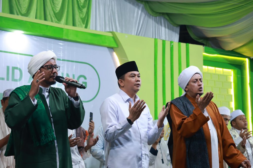 “Pemerintah daerah berkomitmen mendukung kegiatan keagamaan dan pendidikan Islam. Pembangunan tidak hanya soal infrastruktur, tapi juga penguatan iman, akhlak, dan karakter masyarakat,” ucapnya saat sambutan pada peringatan Maulid Nabi Muhammad SAW 1447 H yang digelar di Pondok Pesantren Darul Muhibbin Lil Musthofa, Desa Mekarsari, Kecamatan Simpang Empat, Sabtu (13/9/2025).