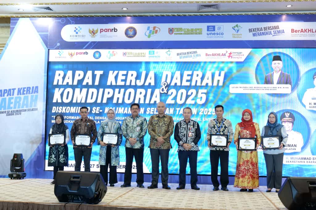 Kedua penghargaan ini diberikan dalam rangkaian Rakerda yang digelar di Banjarbaru, 25 sampai 27 September 2025. Rakerda sebagai forum strategis untuk menyelaraskan arah kebijakan, program, dan kolaborasi antar Dinas Kominfo, Statistik, dan Persandian se-Kalimantan Selatan.